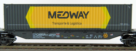 4-achsiger Containerwagen CP Carga mit 1x40 Container Medway , CP
